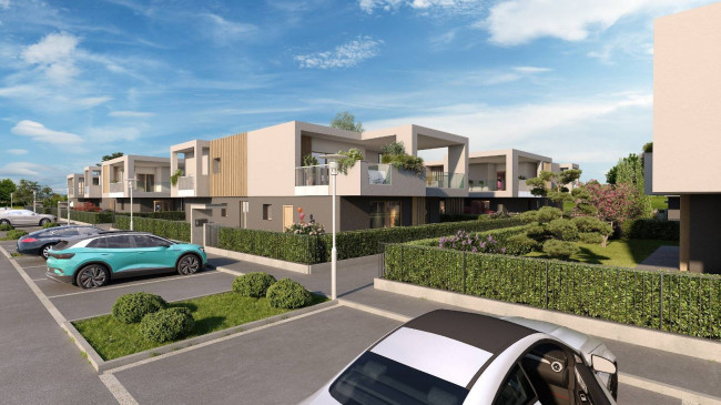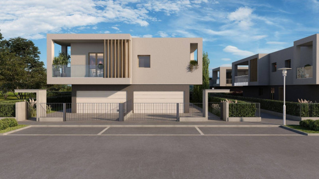 Proponiamo nuova e ampia villa a piano terra composta da ingresso carrale e pedonale indipendenti, soggiorno, cucina a vista, camera matrimoniale con bagno riservato e cabina armadio, due camere e bagno padronale. Box auto doppio con basculante sezionale automatizzata direttamente collegato al piano terra. Area verde esterna di 260 mq privata e parcheggio esclusivo antistante il box.