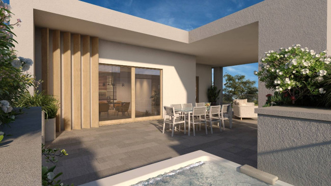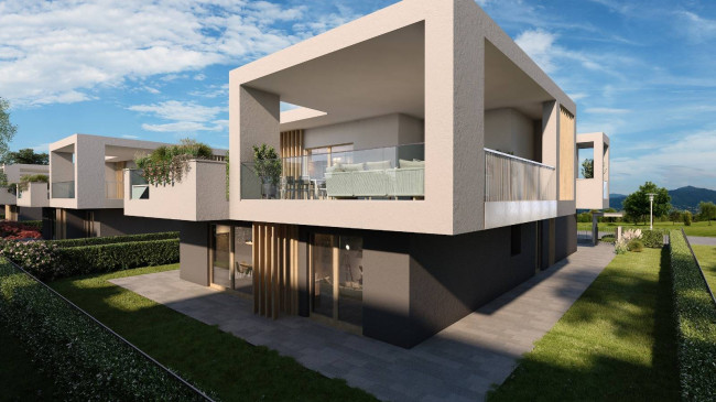 Design innovativo sia per gli esterni che per gli interni, la villa è completamente personalizzabile nelle finiture con capitolato di ottimo livello qualitativo, riscaldamento a pavimento, raffrescamento a pavimento con impianto di deumidificazione, pompa di calore, impianto fotovoltaico da 6 kW per ogni appartamento, portoncino blindato con abbattimento acustico, serramenti in PVC, sanitari sospesi, ampia scelta pavimenti e rivestimenti, porte interne in più colorazioni, predisposizione antifurto perimetrale con barriere interne ed esterne.