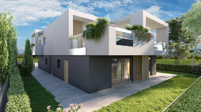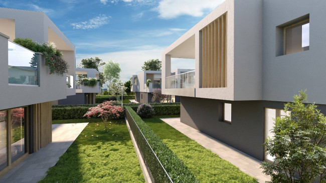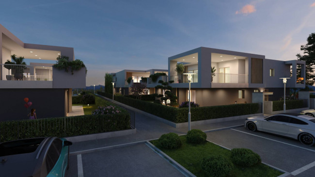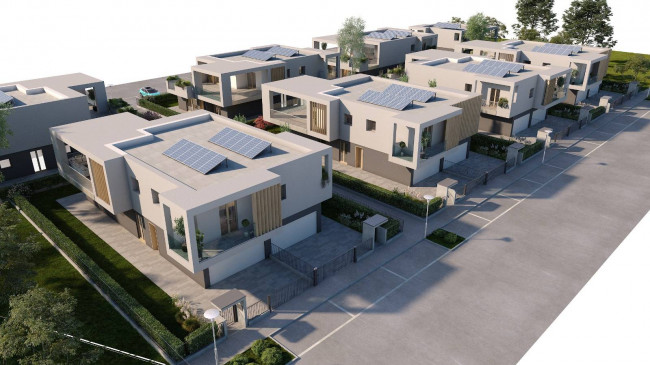 Design innovativo sia per gli esterni che per gli interni, la villa è completamente personalizzabile nelle finiture con capitolato di ottimo livello qualitativo, riscaldamento a pavimento, raffrescamento a pavimento con impianto di deumidificazione, pompa di calore, impianto fotovoltaico da 6 kW per ogni appartamento, portoncino blindato con abbattimento acustico, serramenti in PVC, sanitari sospesi, ampia scelta pavimenti e rivestimenti, porte interne in più colorazioni, predisposizione antifurto perimetrale con barriere interne ed esterne.
