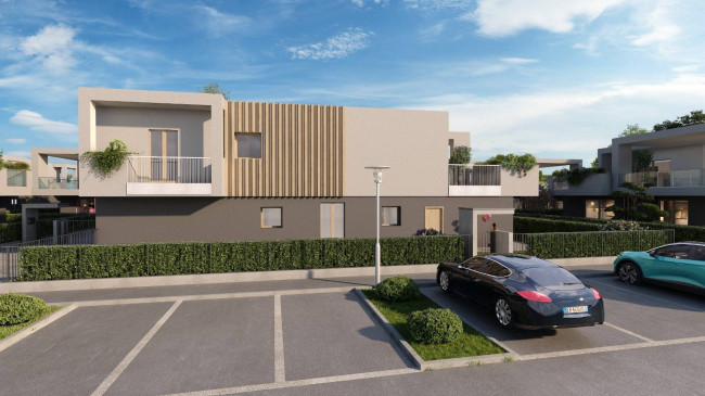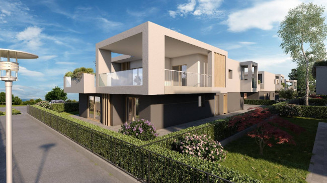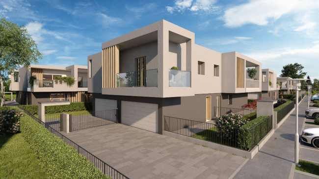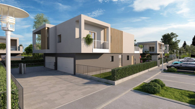 Proponiamo nuova e ampia villa a piano primo composta da ingresso carrale e pedonale indipendenti, soggiorno, cucina a vista, dispenda, camera matrimoniale con bagno riservato, due camere, bagno padronale, bagno ospiti e splendidi balconi di oltre 100 mq. Box auto doppio con basculante sezionale automatizzata direttamente collegato dal piano terra. Area verde esterna di 80 mq privata e parcheggio esclusivo antistante il box.
