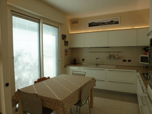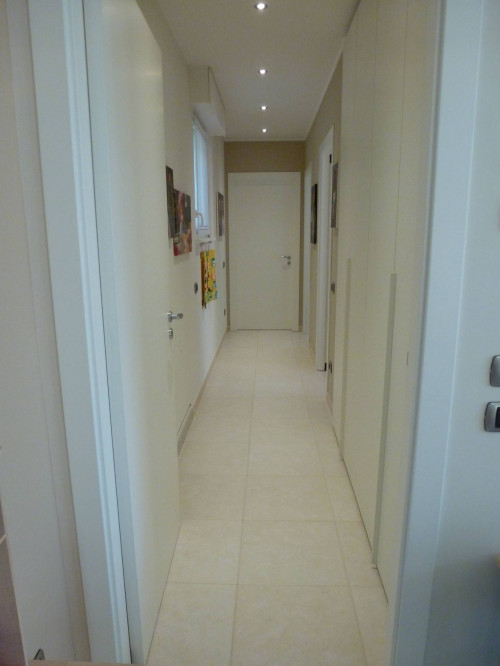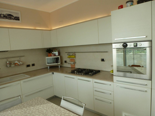 Zona centrale e servitissima, in recente contesto residenziale, disponiamo di trilocale di ampia metratura (110 mq) posto al secondo ed ultimo piano, servito da ascensore, libero su 4 lati. L'Appartamento è così composto: ingresso, soggiorno, zona pranzo, ampia cucina vivibile, antibagno e bagno di servizio, corridoio zona notte con armadio a muro, camera matrimoniale e seconda camera da letto, bagno padronale, terrazzo coperto di 25 mq vivibile ed esposto interamente a sud. Al piano interrato completano la proprietà la taverna di 37 mq, l'intercapedine e un box quadruplo di 71 mq. Le finiture sono extracapitolato: pavimento zona giorno in gres porcellanato e parquet merbau massello nelle camere, riscaldamento a pavimento, aria condizionata inverter, serramenti di recente sostituzione, zanzariere, tapparelle motorizzate in alluminio, sistema audio Tutondo in tutti gli ambienti, impianto TV Sat, impianto TVCC, videocitofono digitale, predisposizione impianto di allarme, canna fumaria per camino nella zona giorno, predisposizione idromassaggio nel bagno padronale, portoni box sezionali automatizzati.