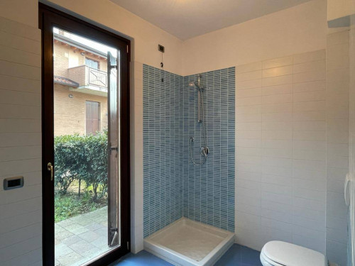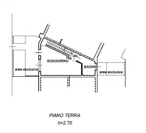 - piano terra: ingresso, soggiorno con cucina a vista con accesso al giardino di proprietà e un bagno finestrato con doccia;